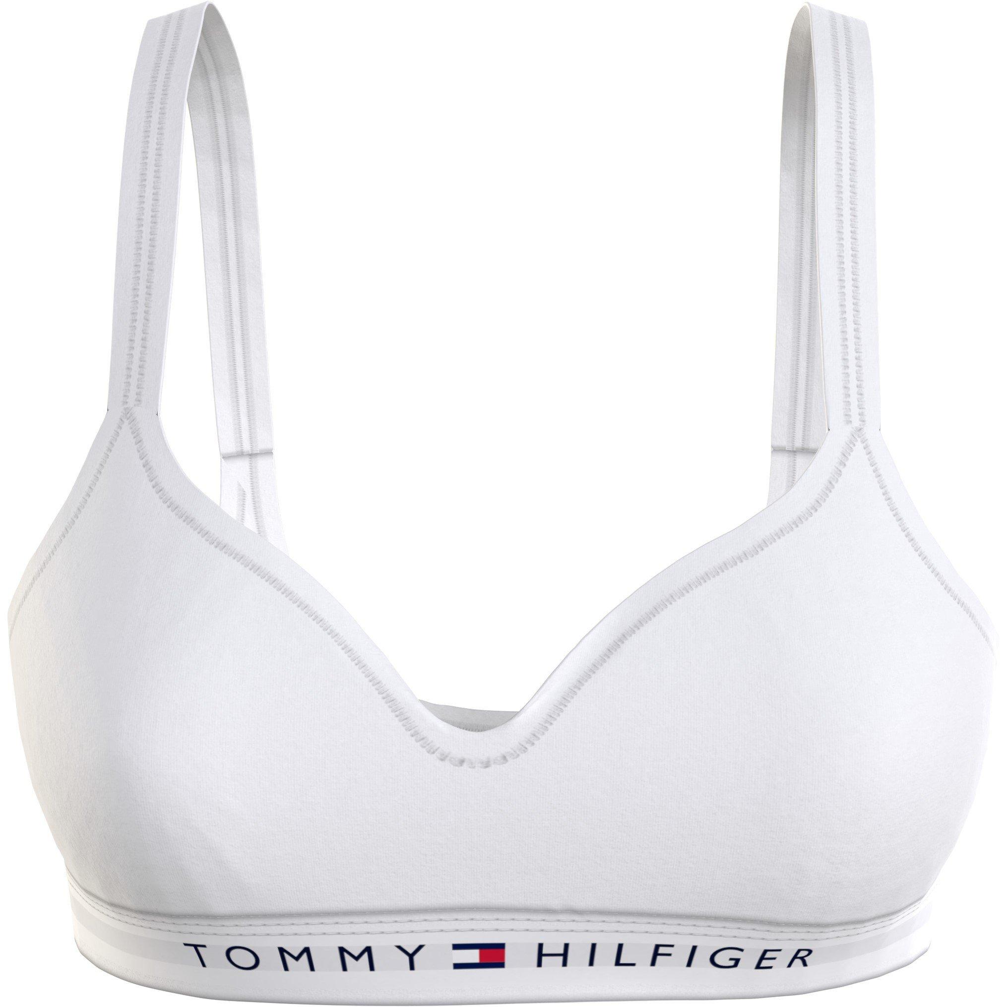Invest in your everyday staples with the Tommy Bodywear Original V Neck Bralette. Designed with a flattering v neckline and low back, the organic stretch cotton construction offers a weightless feel and long lasting comfort allowing you to focus on your day. Decorated in a solid block colour, the bralette is finished off with Tommy Hilfiger branding under bust for immediate brand appeal.