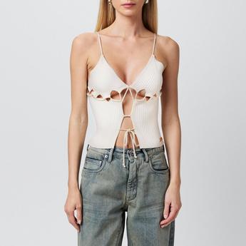 Elevate your knitwear collection with our selection of women's designer knitted tops, curated to blend modern sophistication with cosy style. Prada's designer knitted tops embody refined luxury, perfect for layering under a blazer or pairing with tailored trousers for an upscale look that transitions seamlessly from day to night. Embrace a relaxed yet chic vibe with a Jacquemus knit tank top ideal for pairing with high-waisted jeans and statement earrings, whether for an outdoor brunch or a gallery opening. For a touch of playful edge, Ganni's knitted vest tops come in bold pastel colours, adding a contemporary twist. Boss designer knitted tops offer timeless versatility, perfect for elevating your style this winter season. Each piece in this collection is crafted for those seeking elevated and effortlessly chic style.