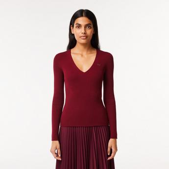 Add a pop to your autumn-winter wardrobe with the women's designer red knitwear collection. Shop an array of ladies red jumpers, cardigans and red knit dresses ideal for seasonal styling. Choose red polo neck jumpers from Tommy Hilfiger for snug aesthetics or pair a cropped red jumper with straight-leg jeans. Opt for a vibrant bright red cardigan from Balmain to make a statement or pick dark red jumpers and burgundy knits for muted looks. Team a Ganni red knit dress with chunky boots for a chic autumnal ensemble or indulge in red wool jumpers from Bella Freud.