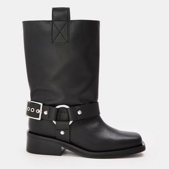 Strength meets statement in women’s designer biker boots, the style that owns its edge without trying too hard. Built from supple leather and finished with signature hardware, these are boots that command attention in every setting. This collection strikes a balance between bold and refined, pairing effortlessly with flowing dresses or cropped tailoring. Go classic with black biker boots, a silhouette that anchors any outfit with authority, or choose leather biker boots for texture and depth that evolves with every wear. Crafted for movement and made to last, they bring confidence from the ground up. Every buckle, zip, and stitch serves purpose and attitude in equal measure. From Steve Madden and Dr Martens to Hugo and Miu Miu, each pair redefines power dressing with its own distinctive edge. This is not a trend, it’s a mindset. Step into individuality, power, and precision with women’s biker boots.