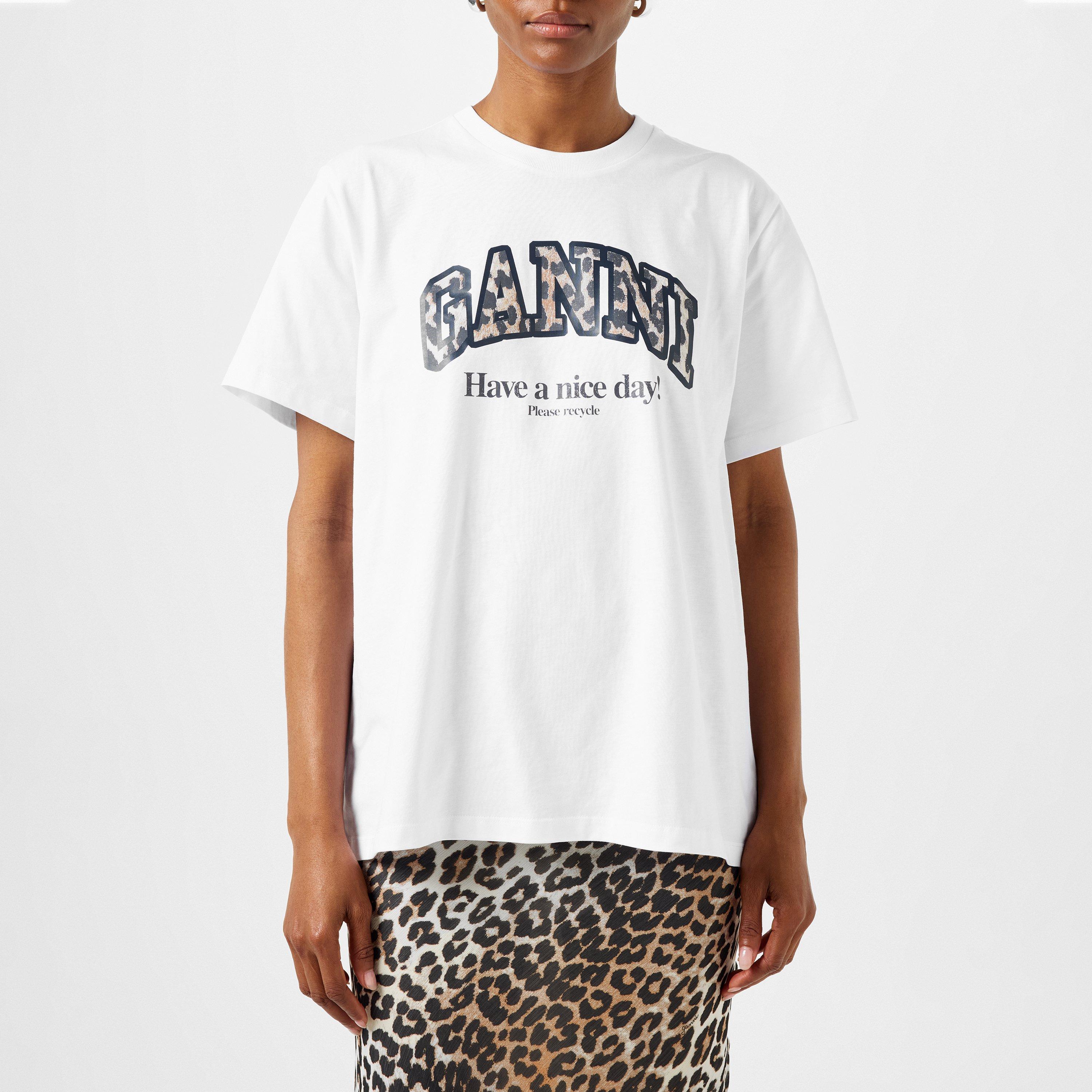 Making a playful statement, this GANNI T-shirt brings a fresh take on casual style. The relaxed-fit cotton design features a distinctive graphic print with a positive message that adds character to your everyday wardrobe. A modern approach to casual dressing, this T-shirt combines comfort with GANNI's signature contemporary aesthetic.