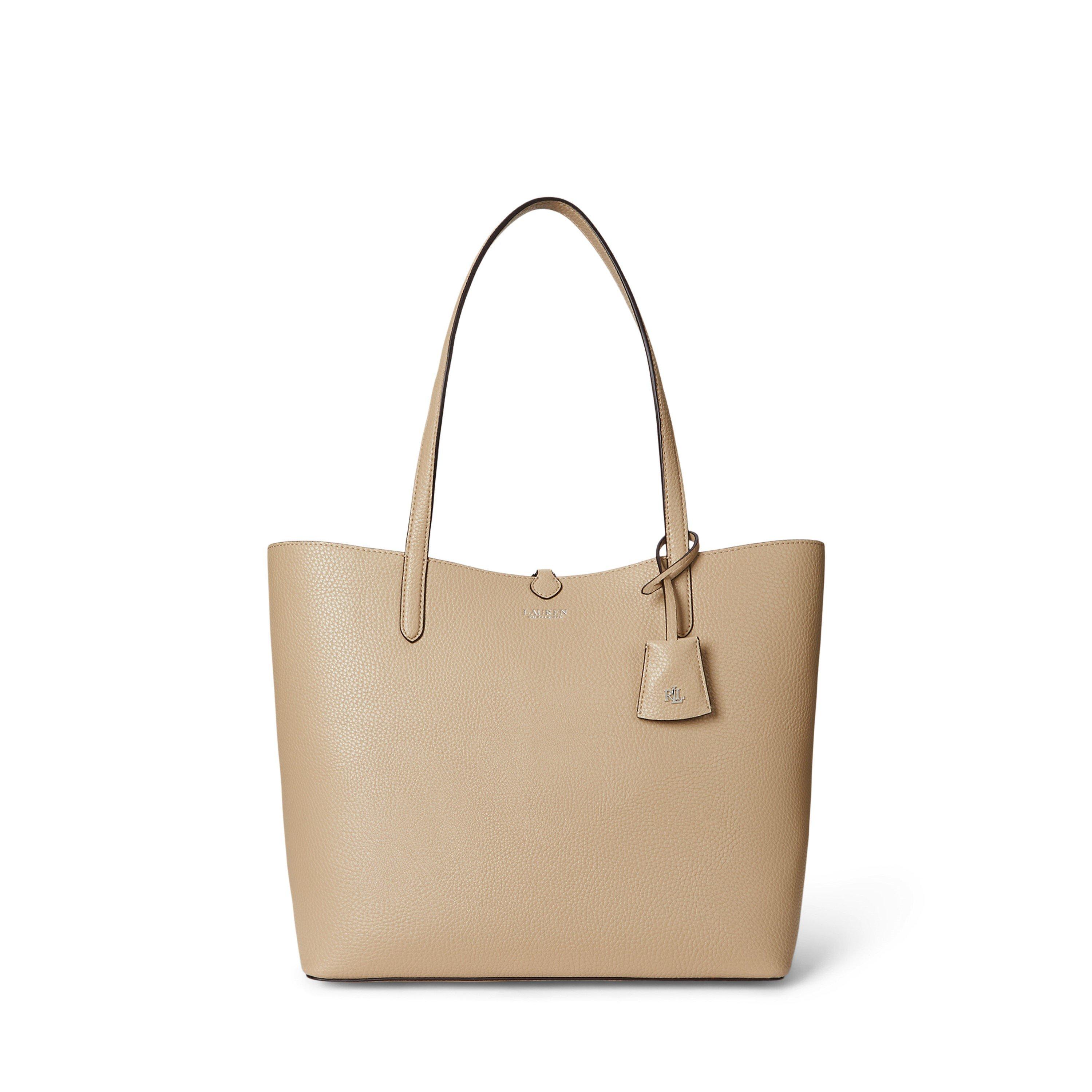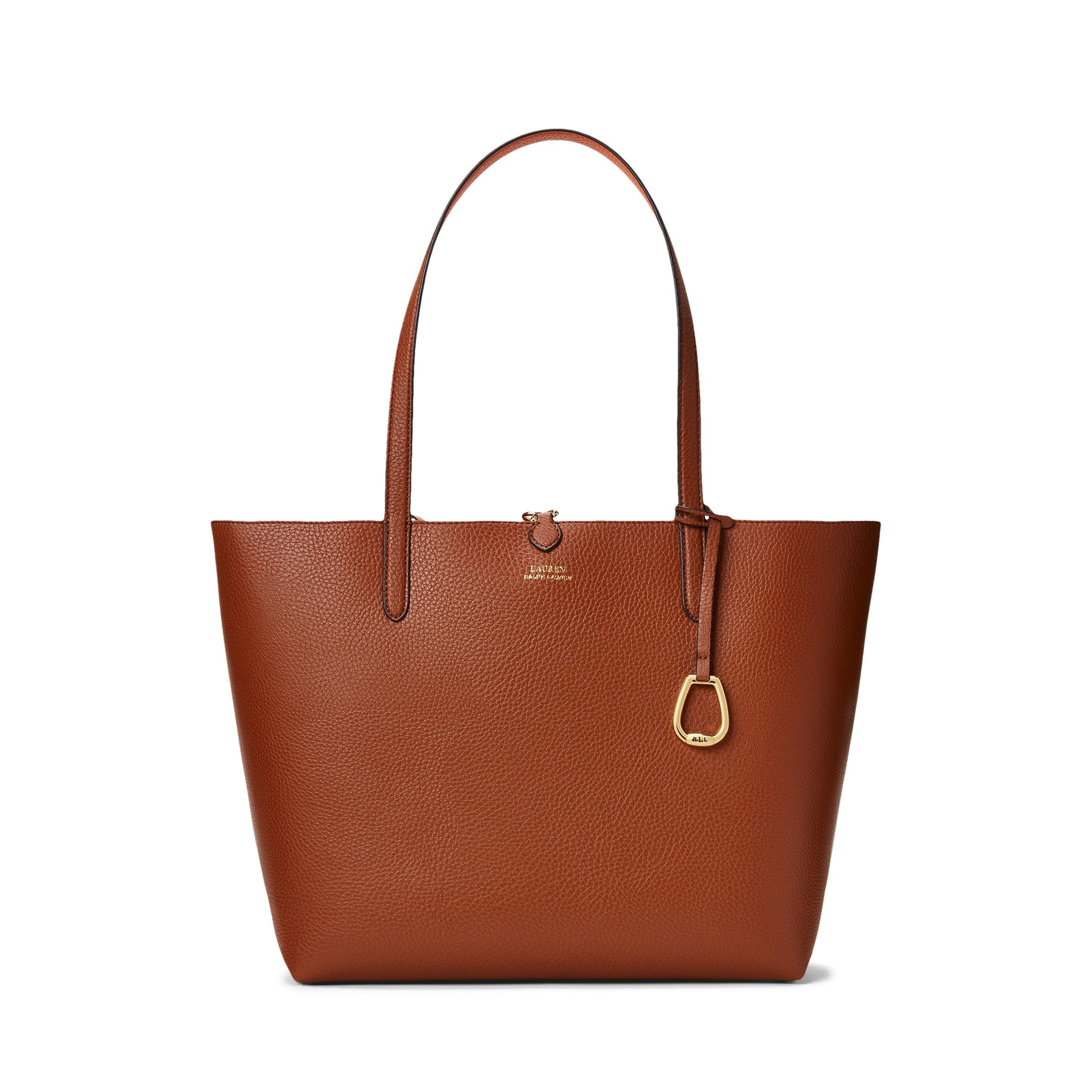 Distinguished by its versatile design, this Lauren by Ralph Lauren tote bag offers two distinct looks in one. The spacious silhouette features premium leather construction with clean lines and minimal hardware for a modern aesthetic. The signature gold-tone branding adds a luxe accent while maintaining the bag's understated appeal. A practical everyday companion, this reversible tote transitions seamlessly from work to weekend.